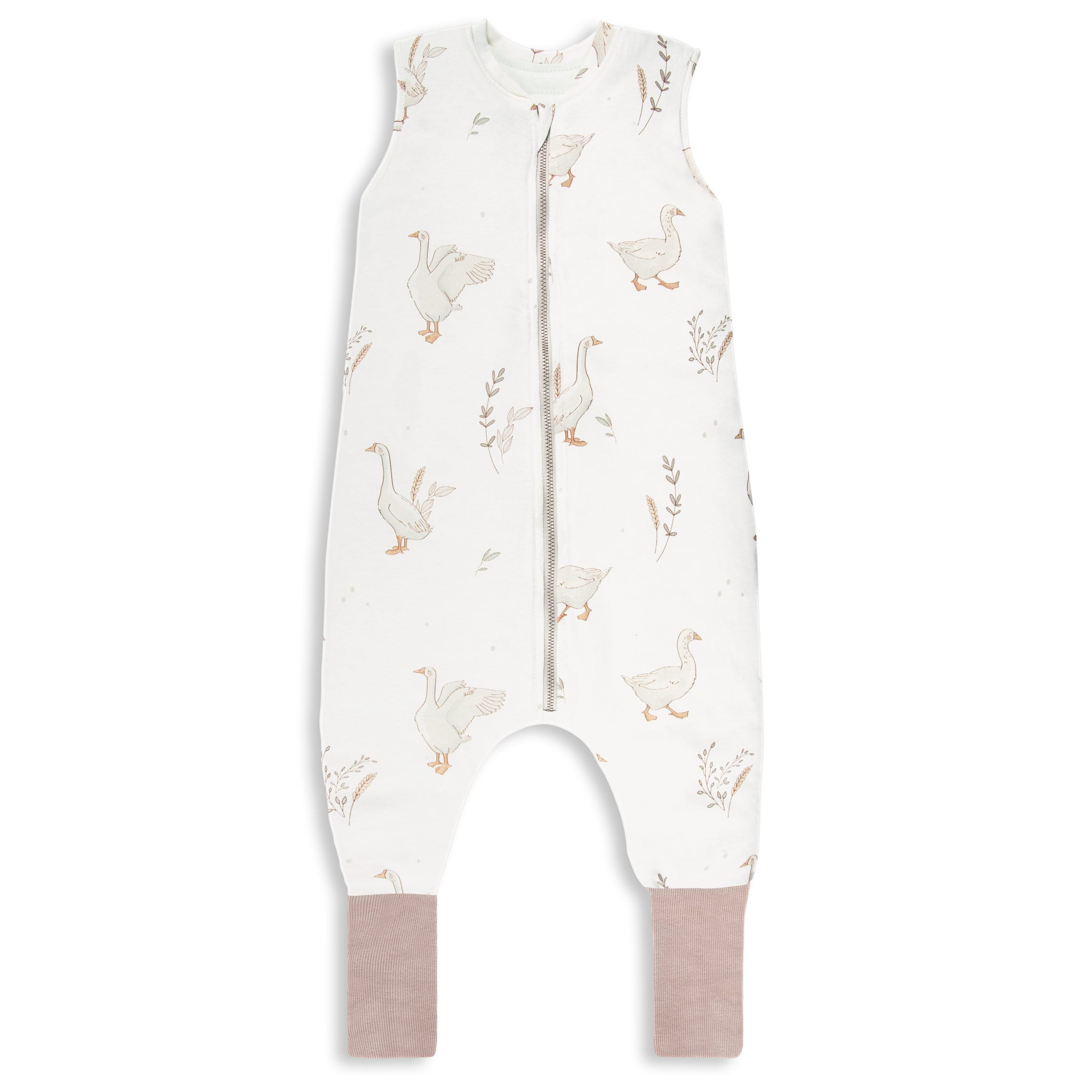 - Beskytter mod kulde og varme: Soveposen eliminerer bekymringer om, at barnet sparker dynen af sig. Den sikrer en behagelig temperatur og forhindrer overophedning via sit åndbare bomuldsmateriale.
