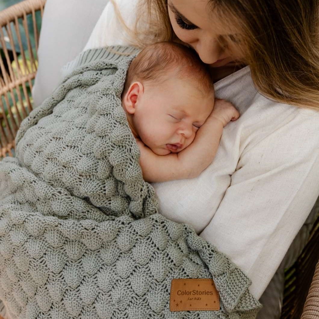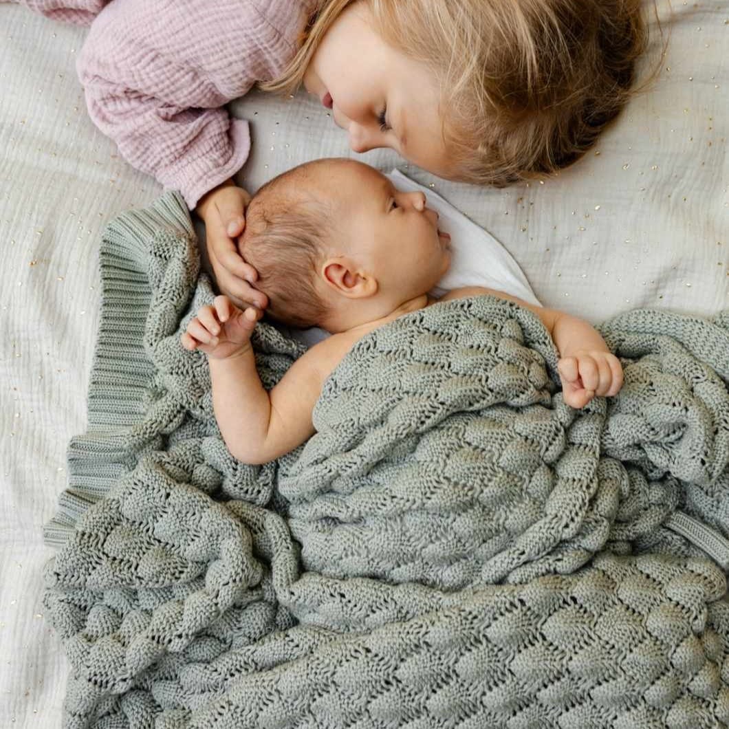 Brug det som svøb, barnevognstæppe, ved amning eller som blød base til leg. Det tidløse, strikkede design gør det både praktisk og pænt – let at matche med resten af babyudstyret.