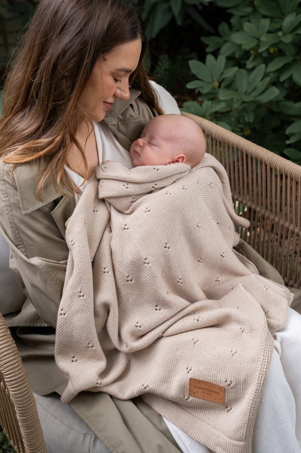 Den åbne struktur gør tæppet åndbart og hjælper med at transportere fugt væk, så babyens hud forbliver tør og behagelig.